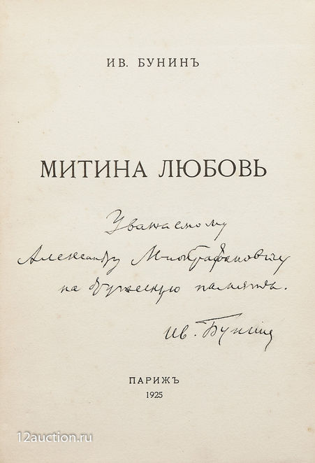 Автографы К. Бальмонта (на книге «Зовы древности», 1923) (лот 621) и И. Бунина («Митина любовь», 1925) (лот 623), адресованные их коллеге поэту Александру Федорову, стартуют с 45 тыс. руб. и 180 тыс. руб. соответственно.